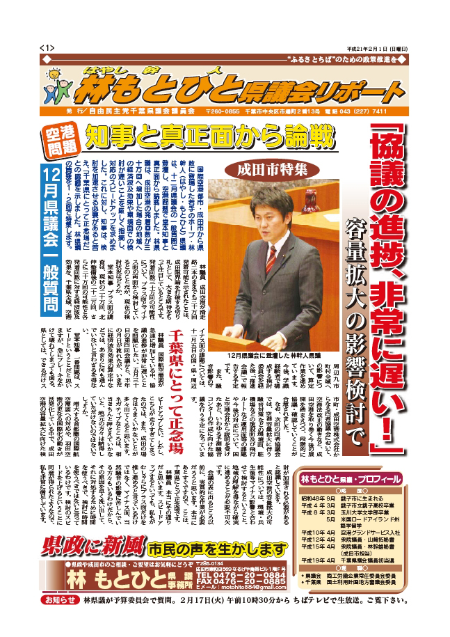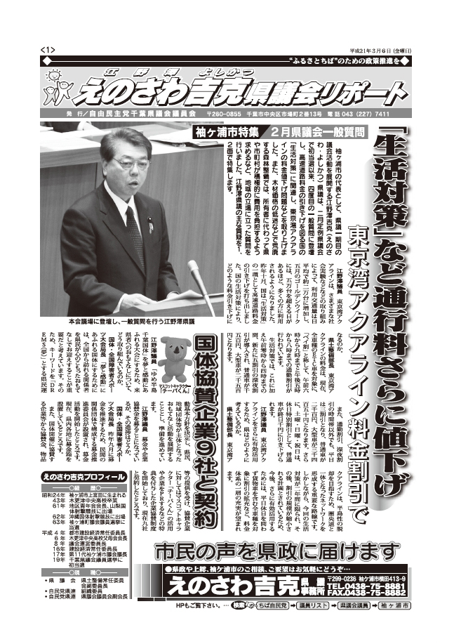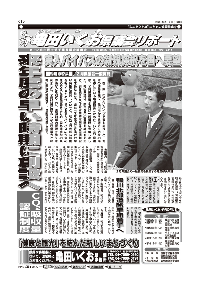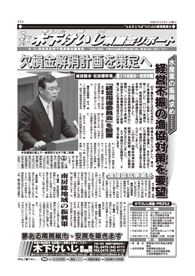 平成21年2月定例県議会ちば自民党、代表質問の質疑内容を掲載