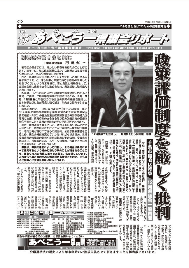 平成21年2月定例県議会ちば自民党 予算委員会登壇者一覧