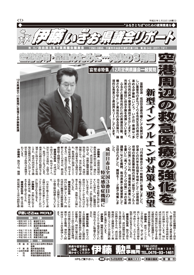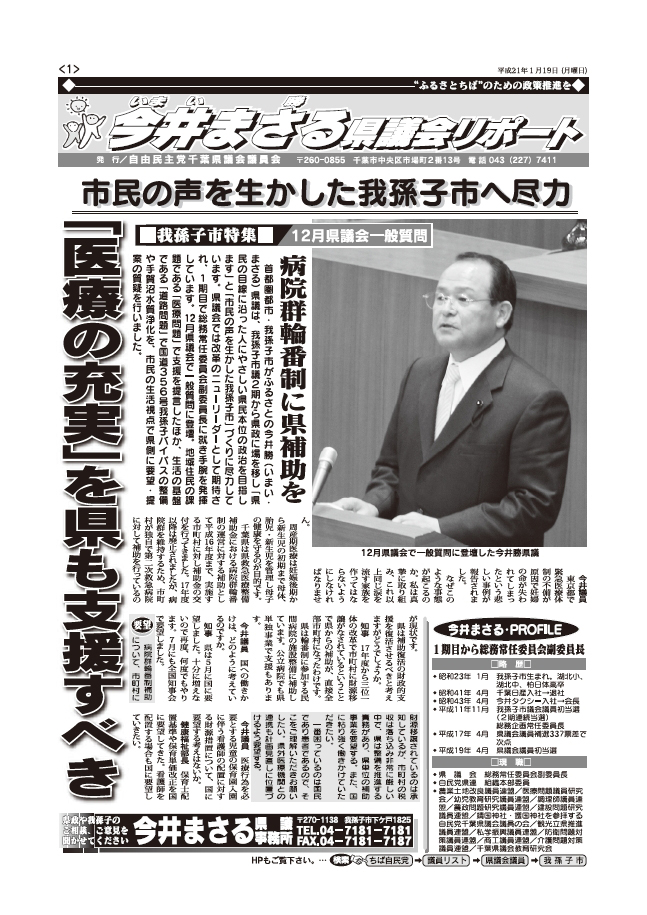 平成20年12月定例県議会ちば自民党 県議会リポートを掲載